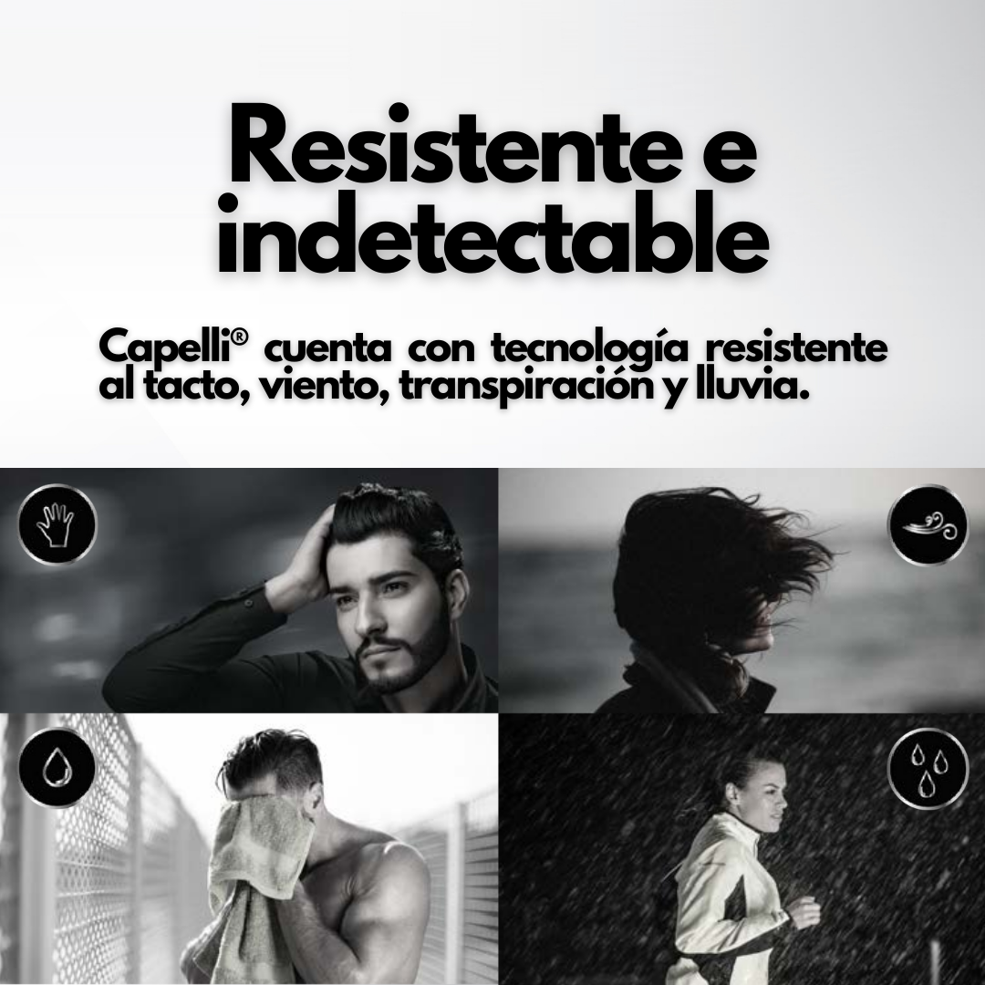 Nada de qué preocuparse, CAPELLI® cuenta con tecnología de última gama que lo hace resistente al tacto, viento, transpiración y lluvia. El grado de resistencia depende de la zona que se esté cubriendo con las microfibras. Entre menor sea la área que se cubre, mayor resistencia tendrá. Para mayor grado de resistencia se recomienda usar cualquier tipo de spray fijador.