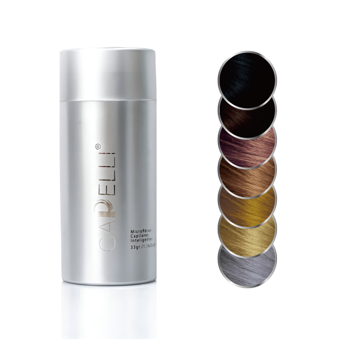 CAPELLI® 33 gr. cubre las áreas de ausencia capilar, dando un aspecto de cabello grueso y abundante en segundos. Contiene 33 gr.